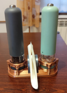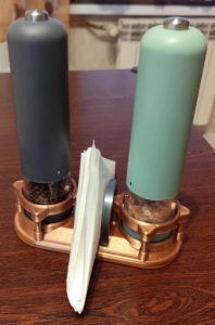 Projekt statywu na pieprz i sól do wytwarzania metodą wydruku 3D - FDM. Zobacz film wykonania projektu: Statyw na młynki do przypraw: sól, pieprz oraz serwetki - wydruk 3D.
